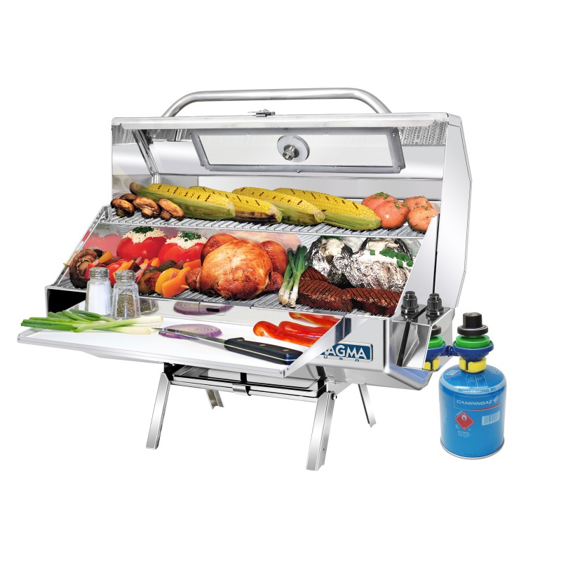 Для получения счета свяжитесь с нашими менеджерамиГриль газовый Magma Monterey Infrared A10-1225GSCE-2 (производство США) изготовлен из полированной нержавеющей стали 18-8 с максимальной защитой от коррозии. Оснащен инфракрасной технологией интесивного распределения тепла, складными ножками из нержавеющей стали для идеального использования на берегу, сбалансированной крышкой с замком, герметичным термометром, надежным электроподжигом. Сетки приготовления пищи (нижняя: 12 "х 24" (30х61 см), верхняя 5.5" x 24” x 18” (14х61см) идеально подойдут для продуктов любого размера, поворотный регулятор клапана позволит легко контролировать подачу газа и уровень температуры, большое смотровое окно из огнеупорного стекла позволит следит за готовкой без открытия крышки, ручка, доступная с любой стороны в полную длину, делает монтаж и транспортировку гриля легкими и удобными. Доступны различные варианты монтажа и полная линия аксессуаров. Быстро и легко разбирается для чистки и транспортировки. Подойдет для использования на даче, в дороге, пикнике на природе, на борту во время рыбалки, отдыха прямо на ходу. Легко адаптируется к встроенной газовой системе судна. Своими размерами, дизайном, производительностью и безопасностью этот гриль, безусловно, превзойдет все ожидания самых требовательных энтузиастов гриль-готовки, он легко обеспечит целый банкет для экипажа. Нижняя сетка идеально подойдет для приготовления блюд на высоких температурах, например стейков или жаркого, верхння - на более низких: рыбы, овощей и хлеба. Monterey A10-1225LSCE-2 специально разработан, что бы вы могли насладиться всеми функциями стационарного гриля на борту судна.