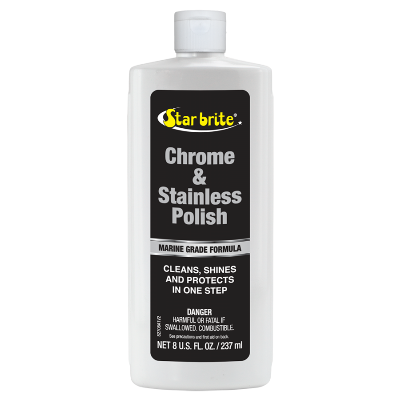 Поліроль для хрому та нержавіючої сталі допомагає зберегти кращий зовнішній вигляд як нових, так і старих човнів, швидко та легко видаляючи пісок, бруд та жир з металевих поверхонь. Після легкого полірування формула залишає на металевих поверхнях захисний бар'єр, який запобігає появі виразок, сольових відкладень і знебарвлення в результаті іржі та корозії. нержавіючої сталі.